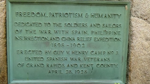 However, maybe a good place to start would be to look at the statue that resides in the little pocket park located at the intersection of Cherry, State and Madison streets. The statue is of a generic US soldier who fought in what is generally identified as the Spanish American Wars.