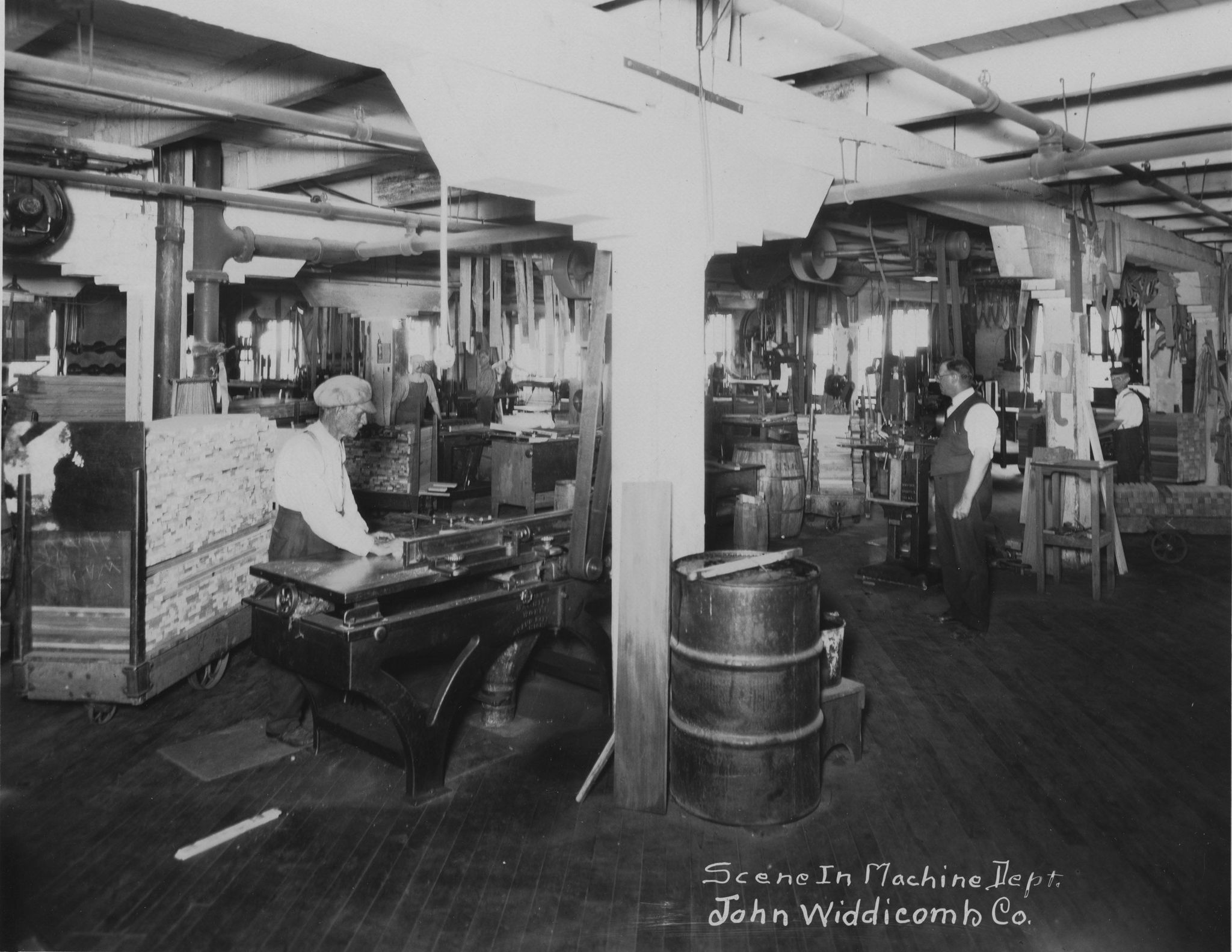 Only seventeen years earlier, the last great log run swept away the railroad bridge near Ann Street. Crowds gathered along the banks of the Grand River to watch as thousands of white pine logs created a jam seven miles long and thirty feet deep. Perhaps this is why so many furniture factories started in the “valley city” — cheap wood, cheap water power, and cheap labor. Scattered along the river and throughout the city were 85 furniture and woodworking factories. Berkey and Gay, Widdicomb, American School Furniture Co. (American Seating), Sligh, Stickley Bros. and others were just then making this medium size city of 87,576 the furniture capital of the United States, a title it held until the Great Depression.