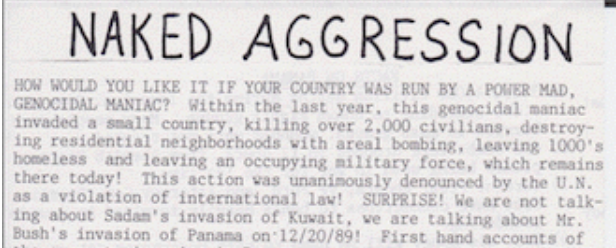 Last week we posted a flyer that was created by the Latin America Working group at the Institute for Global Education on the Guatemalan Genocide and the Columbian Legacy. We discovered another flyer that was developed in response to the US invasion of Panama at the end of 1989.