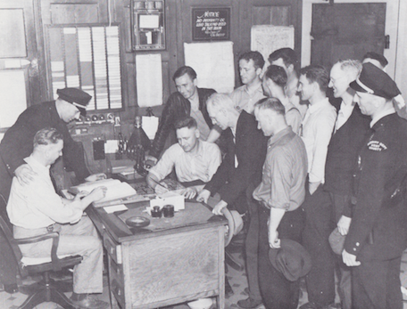 In some cases workers defied an anti-picketing injunction that the local courts imposed and many workers went to jail for brief periods in order to win labor contracts and build worker power from the ground up. In the photo above, you see striking workers being booked at the Kent County Jail in June of 1937.