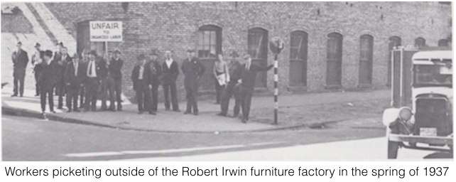 In the Spring of 1937 the UAW called for strikes at the Robert Irwin Co., the Macey Co., and Irwin Seating, which involved roughly 1,000 workers over a five week period. In September of that same year more strikes would break out at the Furniture Shops of America, John Widdicomb, Grand Rapids Chair and other furniture factories. In each of these instances the union got a closed shop contract, a check-off procedure and wages increases.