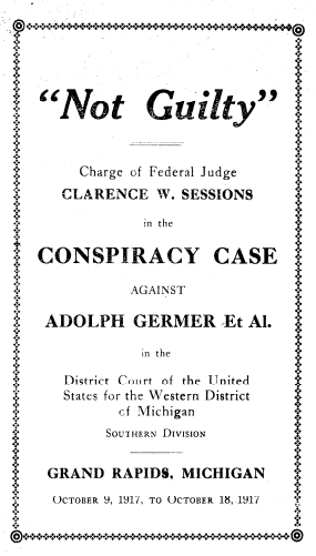 brought against them from May of 1917. The trial ended on October 18, 1917, and it well documented by the National Socialist Party in the publication entitled, “Not Guilty.”