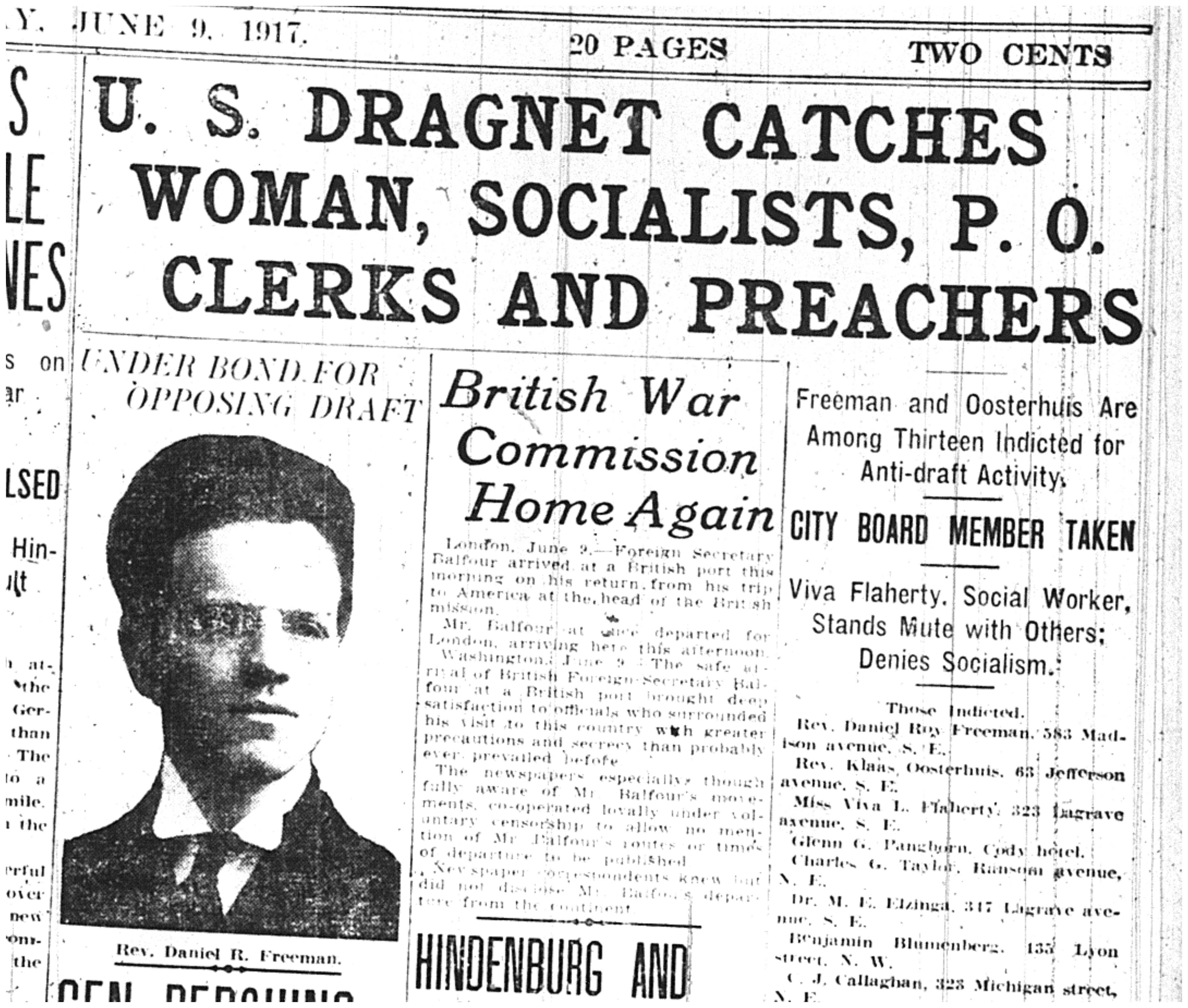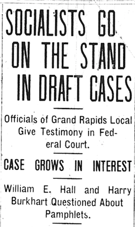 In May of 1917, several members of the Socialist Party, two clergymen and Feminist/Labor supporter Viva Flaherty were arrested in Grand Rapids for distributing anti-conscription pamphlets near downtown Grand Rapids.