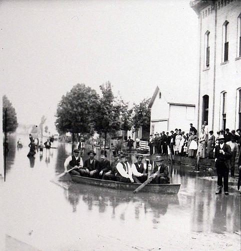 You can see in the following two photos how many working class people were forced to evacuate in boats ( first photo) for a period of time because of the flooding along the Grand River and how the flooding caused damage to the modest wooden homes seen in the second photo below.