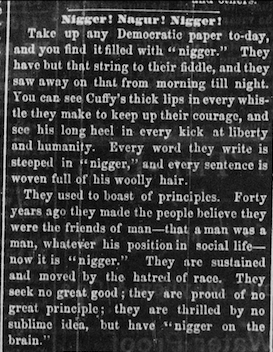 Such a statement was not just for show, but was reflected in the newspaper’s content, particularly in their editorial section. On April 5, 1870, the Daily Morning Democrat was still complaining about Negro Equality. We re-post that editorial from April 5, 1870.