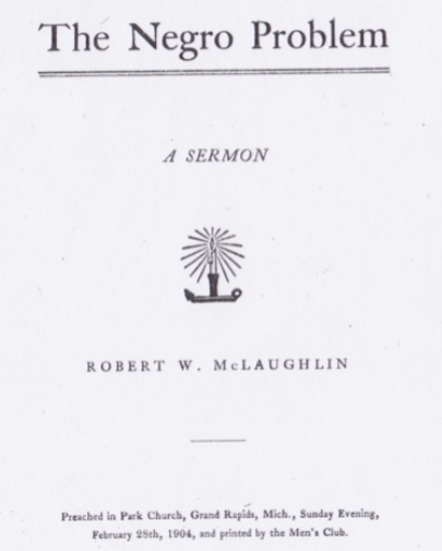 The positive reception to Booker T. Washington’s message was not only welcomed by white capitalist in Grand Rapids, but by white religious leaders. Again, we are grateful for the reference to Pastor Robert McLaughlin’s speech in 1904, cited in Jelk’s book, African Americans in the Furniture City.