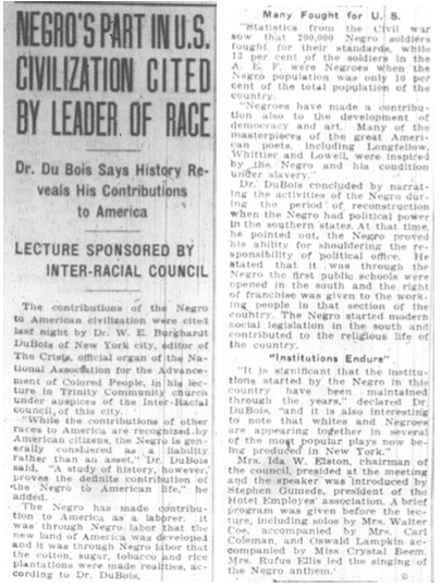 Unfortunately, there was no recording or transcription of the talk Du Bois gave in 1928, so it is hard to say completely what he talked about. But here in what the Grand Rapids Herald reported below.