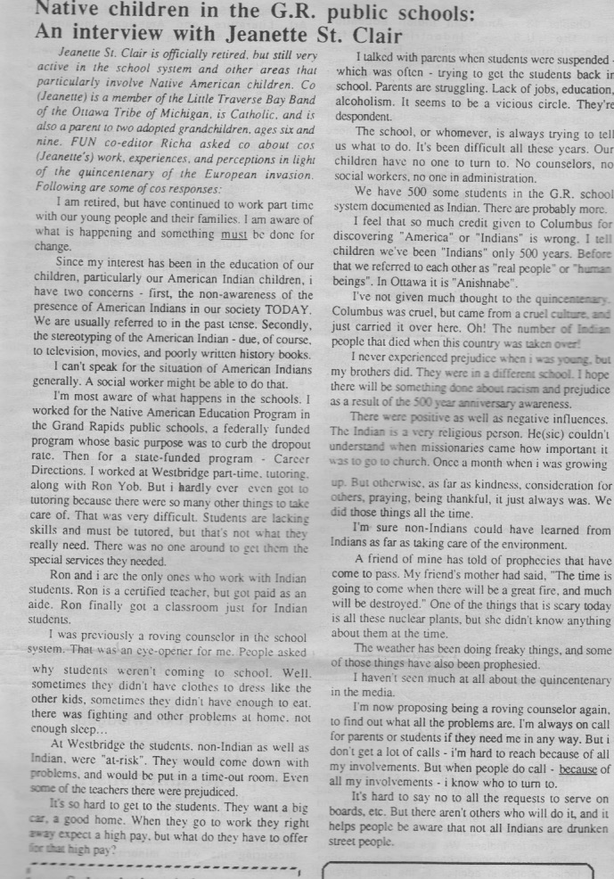 The Native American Education Program in the Grand Rapids Public Schools, which is discussed in this interview, lost most of its funding but still exists to this day.