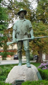 However, maybe a good place to start would be to look at the statue that resides in the little pocket park located at the intersection of Cherry, State and Madison streets. The statue is of a generic US soldier who fought in what is generally identified as the Spanish American Wars.