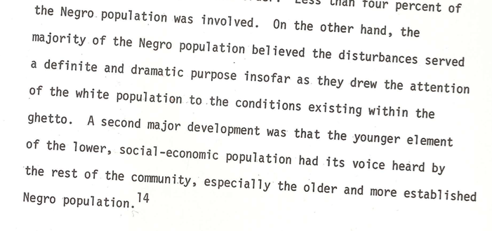 One result of that meeting was the creation of the Negro Leadership Council (later renamed the Black Unity Council) that did include some of the “young militants.” Three days later the riot was over.