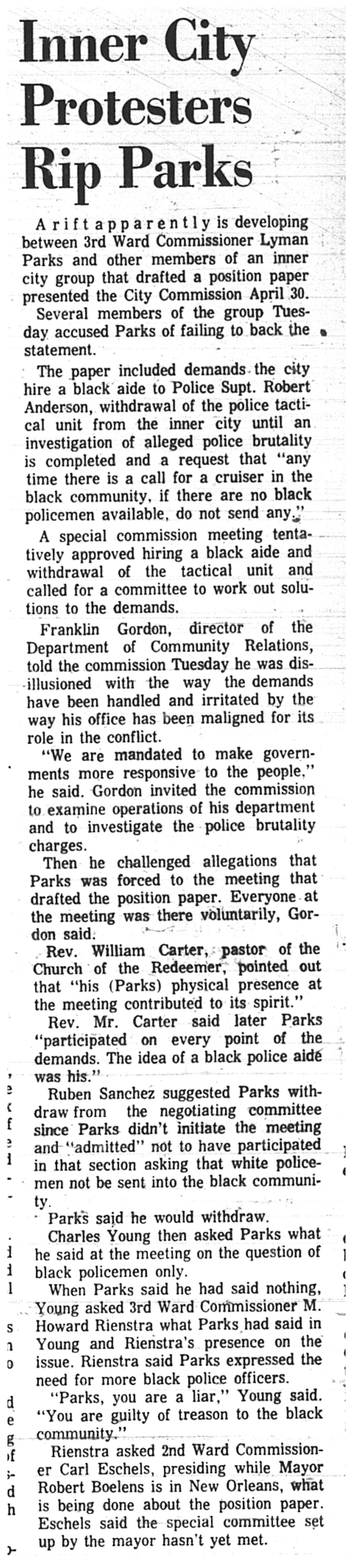 The Grand Rapids Press article does say that, “A special commission meeting tentatively approved hiring a black aide and withdrawal of the tactical unit and called for a committee to work out solutions to the demands.”