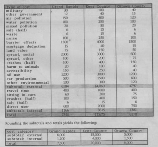 In 1997, several people who were working on transportation issues with the West Michigan Environmental Action Council (WMEAC), published a study on the real costs of driving for Grand Rapids and surrounding communities.