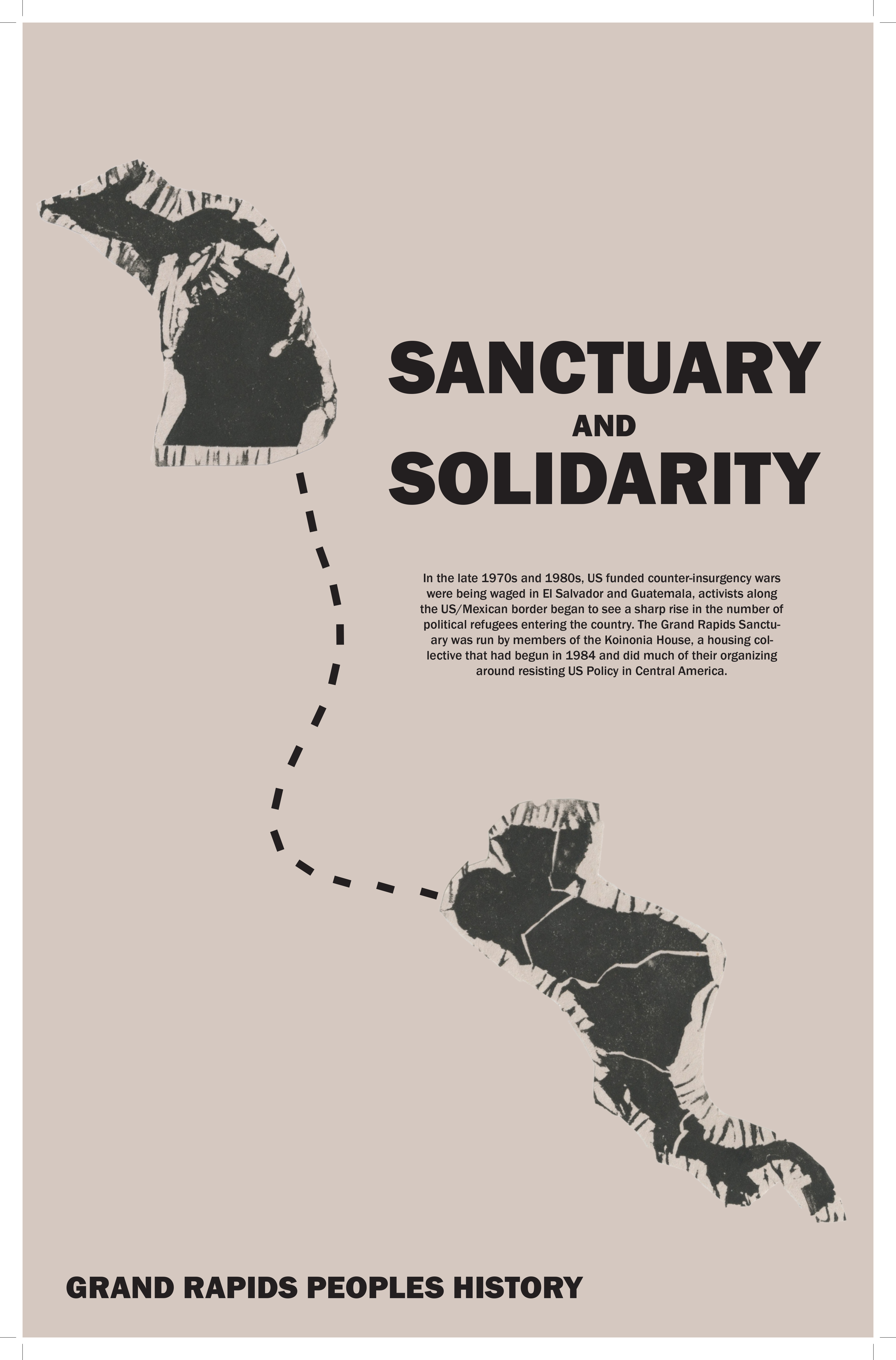 A new print from GVSU student Michaela West celebrates the fact that Grand Rapids had a formal sanctuary for Central Americans who were fleeing US-backed death squad violence in the 1980s.