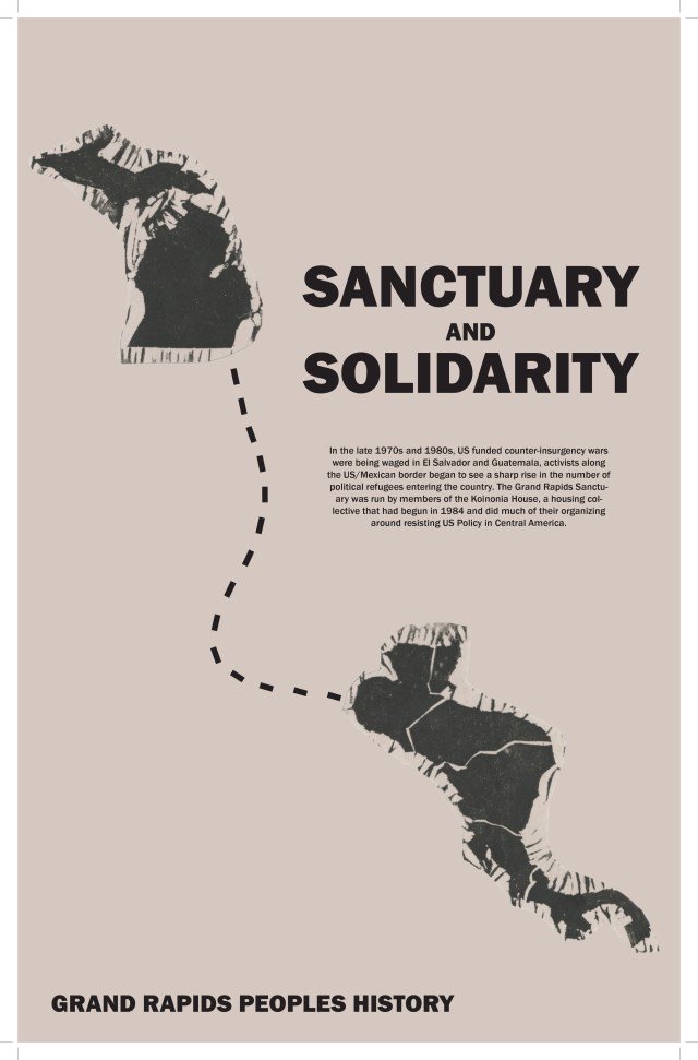 The Grand Rapids People’s History Project has several postings about the Central American Sanctuary Movement in the 1980’s. The first post provides an overview of the group that provided Sanctuary, the Koinonia House, which was a community house similar to a Catholic Worker House.